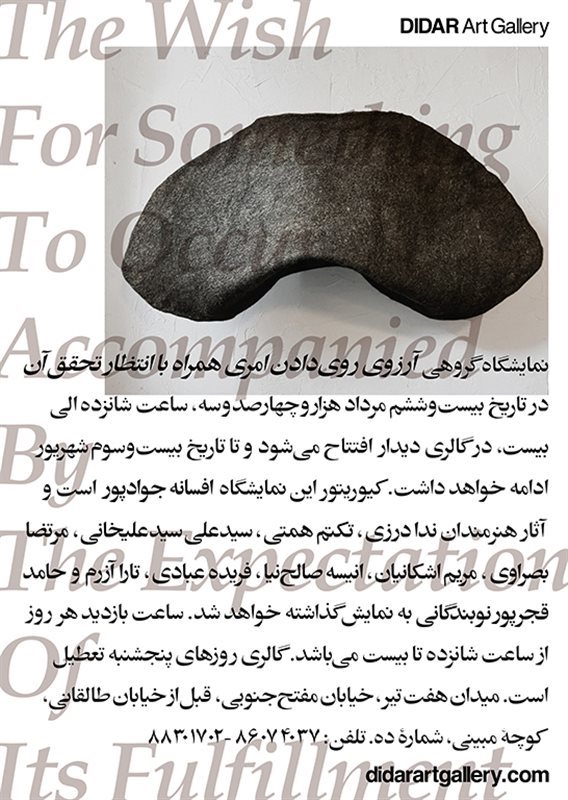 Artists: Neda Darzi, Toktam Hemmati, Seyed Ali Seyed Alikhani, Morteza Basravi, Maryam Ashkanian, Aniseh Salehnia, Farideh Ebadi, Tara Azarm, Hamed Ghajarpour Nobandegani