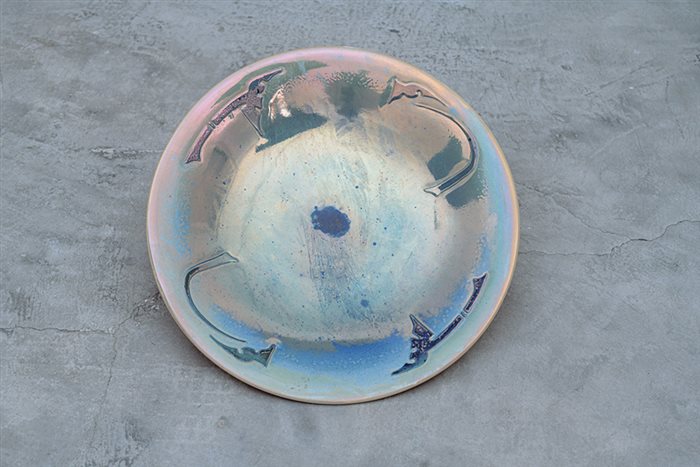 In terms of technique, the interest again in the historical periods of Iranian art can be examined in the works of these two artists, namely the ones that were inspired by the gray pottery of the third millennium BC, red glazing, gold-colored pottery (alchemy belonging to the eighth century) and the revival of Neyshabur pottery. To create their artworks, Monir and Mehdi combine countless materials in the glazing, ranging from natural substances such as the Ashnoon plant (Seidlitzia rosmarinus) to minerals including different types of oxides (copper, manganese, titanium, cobalt, silica, chromium, selenium, etc.), using handmade diesel kilns or the unique facilities of the Maghsoud porcelain factory. For many years, these two have conducted arduous experiments in the process of creating the work for glazing. It is as if the work, which is a part of the artist’s existence, is placed in the kiln by chance while the artist waits patiently to see the work at the end of the process.